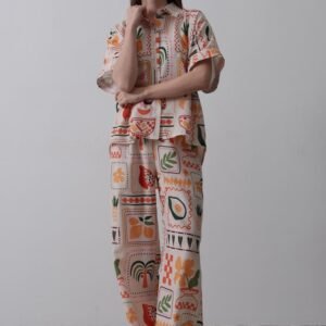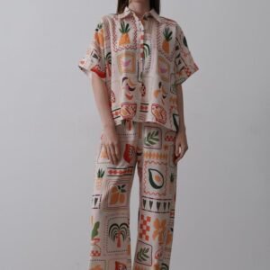 Baskılı Kısa Kol Pantolon Takım – Taş-Oranj