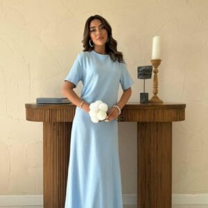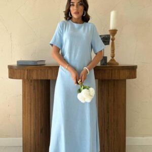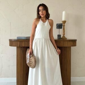 Bej Arkası Gipeli Keten Elbise
