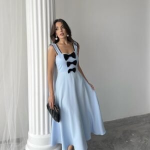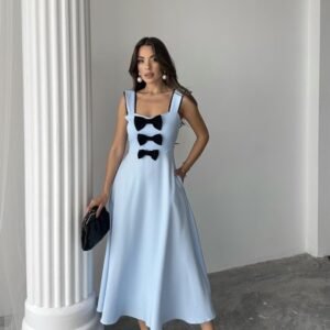 Bebe Mavi Fiyonk Garnili Dantelli Elbise