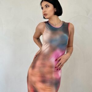 Bej Batik Desenli Elbise