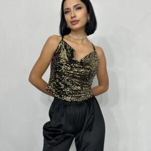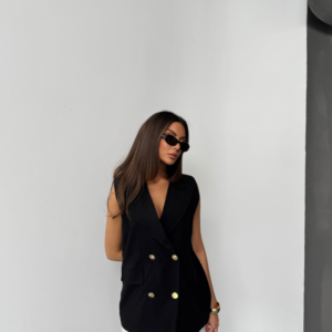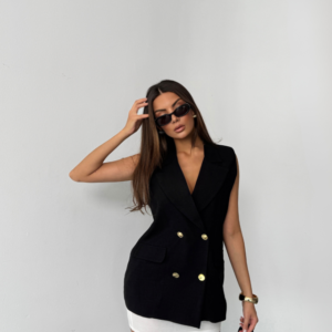 GOLD DÜĞMELİ KETEN YELEK – Siyah