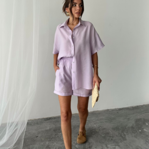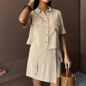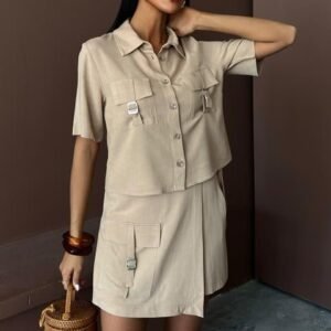 Gömlek Şort Etek Viscon Keten Takım 10162