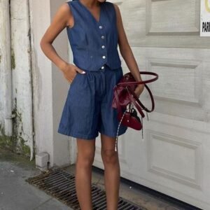 Gümüş Düğmeli Yelek Ve Şort Tensel Takım 10174