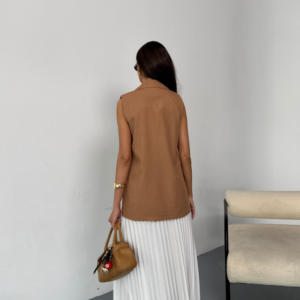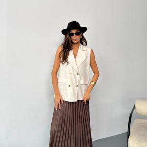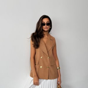 GOLD DÜĞMELİ KETEN YELEK – Kahverengi