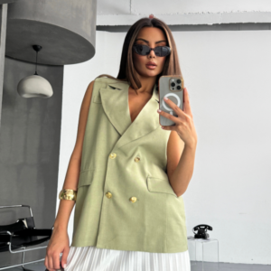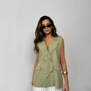 GOLD DÜĞMELİ KETEN YELEK – Yeşil