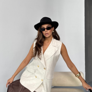 GOLD DÜĞMELİ KETEN YELEK – Ham