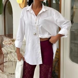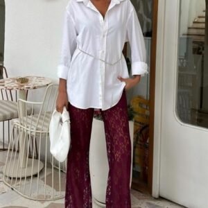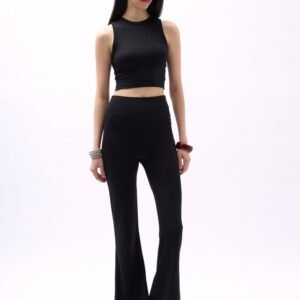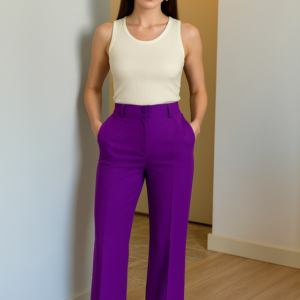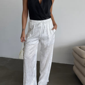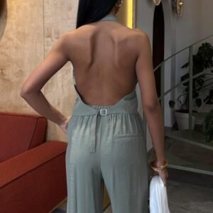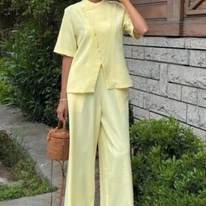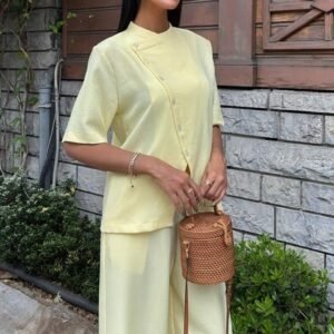 Hakim Yaka Çapraz Düğmeli Plazzo Pantolon Viscon Keten Takım 10209