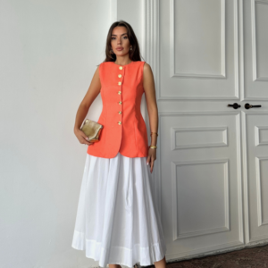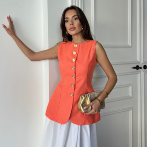 JAKAR KETEN YELEK BELDEN OTURTMALI GOLD DÜĞMELİ – Orange