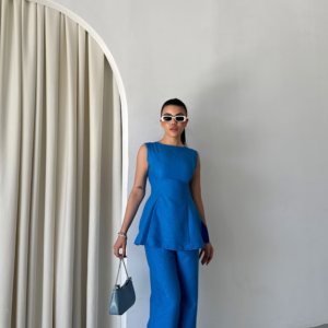 JAKAR KETEN KOLSUZ BLUZ-PANTOLON TK – Mavi