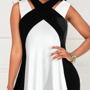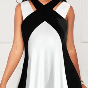 Kadın Askılı Boyundan çapraz Halter Yakalı çift Renkli Viskon Bluz