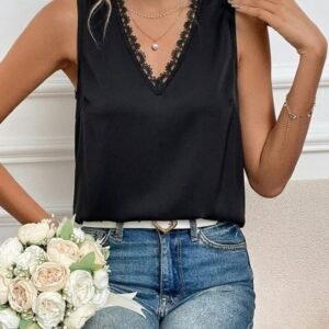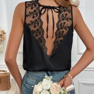 Kadı Askılı V Dantel Yakalı Sırttan Bağcıklı Sandy Bluz