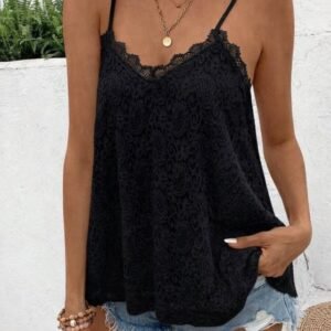 Kadın Ip Askılı V Dantel Yakalı Dantel Bluz