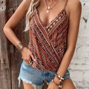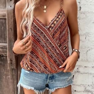 Kadın Ip Askılı V Yakalı Desenli Süprem Bluz