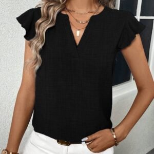 Kadın Kısa Kelebek Kollu V Yakalı Bluz