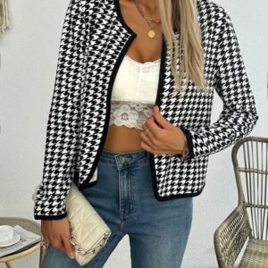 Kadın Uzun Kollu Kaz Ayağı Desenli şardonlu Dalgıç Ceket