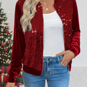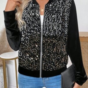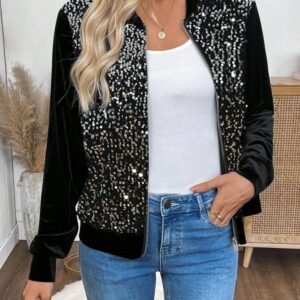 Kadın Uzun Kollu önü Açık Fermuarlı Pulpayetli Kadife Ceket