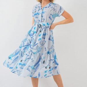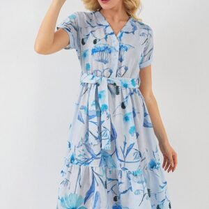 Desenli Kısa Kol Elbise 2558 – Mavi