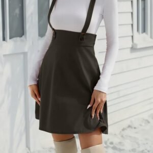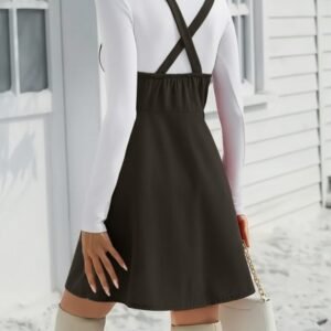 Kadın Askılı Düğmeli Mini Süet Elbise