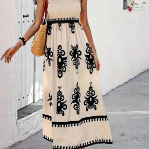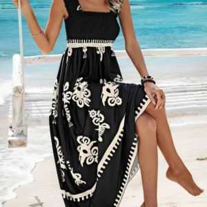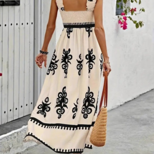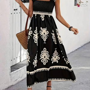 Kadın Askılı Kare Yaka Gipe Detaylı Desenli Suprem Elbise