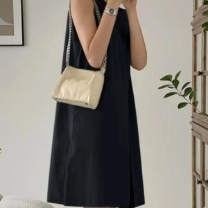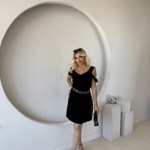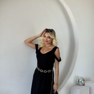 Kadın Askılı Sıfır Kol A Kesim Detaylı Ithal Krep Elbise