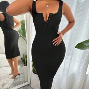 Kadın Askılı önü Düğmeli Midi Kaşkorse Elbise