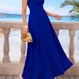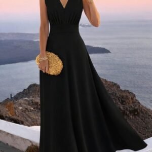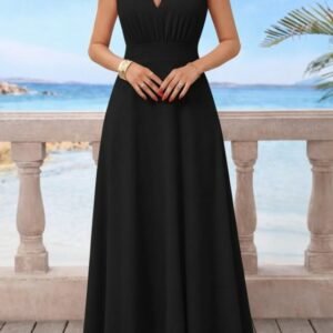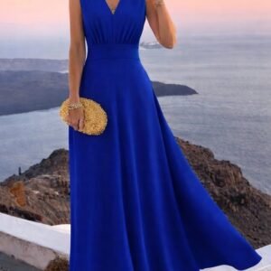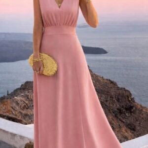 Kadın Askılı V Yakalı Bel Korsaj Detaylı Uzun Ithal Krep Elbise