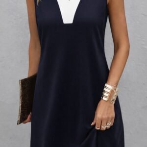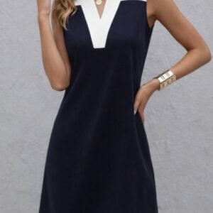 Kadın Askılı V Yakalı çift Renkli Kısa Viskon Iki Iplik Elbise
