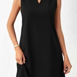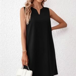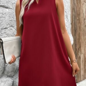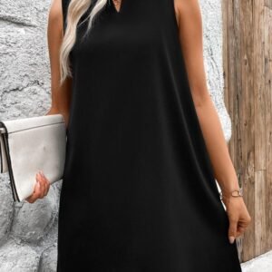 Kadın Askılı V Yakalı Geniş Kesim Detaylı Kısa Janjan Krep Elbise