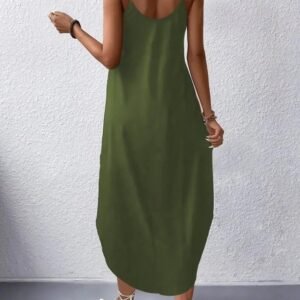 Kadın Askılı V Yakalı Uzun Viskon Elbise