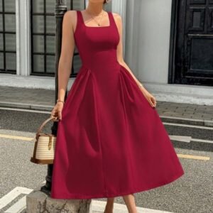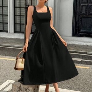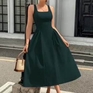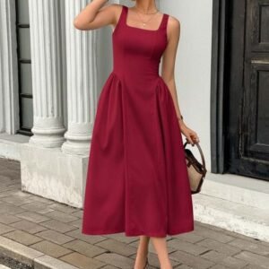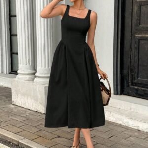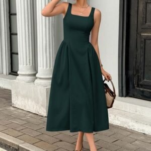 Kadın Askılı Kare Yakalı Uzun Ithal Krep Elbise