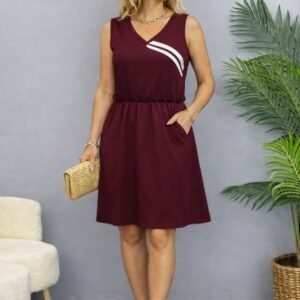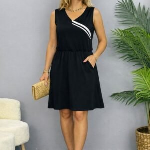 Kadın Askılı V Yakalı Beli Büzgülü Kısa Viskon Iki Iplik Elbise
