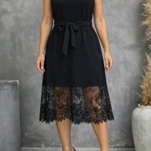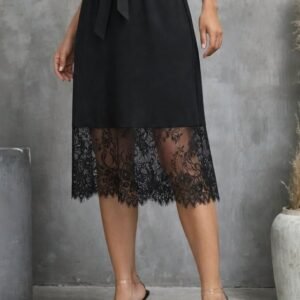 Kadın Askılı V Yakalı Dantelli Midi Viskon Elbise