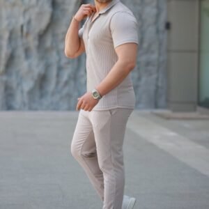 Erkek Yakalı Fermuarlı T-shirt şort Ikili Takım
