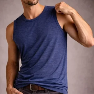 Erkek Flamlı Kumaş Sıfır Kolsuz Atlet Basic Spor Üst, Günlük Ve Fitness Kullanımına Uygun – İndigo