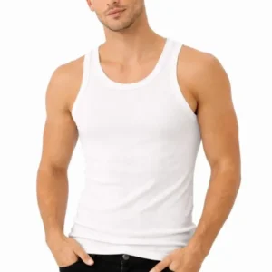 Erkek Flamlı Kumaş Sıfır Kolsuz Atlet Basic Spor Üst, Günlük Ve Fitness Kullanımına Uygun – Beyaz