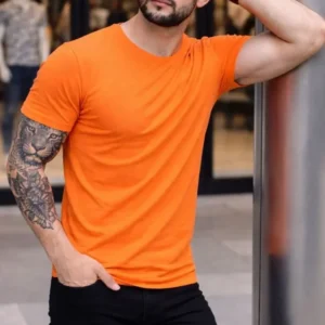 Erkek 2li Bisiklet Yaka Tişört – Kısa Kollu Yazlık Slim Fit Body – Siyah – Turuncu