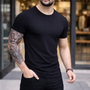 Erkek T-Shirt Bisiklet Yaka Slim Fit Dar Kesim Likralı Tişört Günlük Basic Body – Siyah