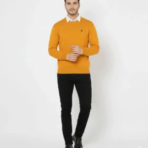 Erkek Bisiklet Yaka Nakış Işlemeli Triko Kazak Yumuşak Dokulu Pamuklu Ince Dokuma, Uzun Kollu Rahat Regular Kalıp – Turuncu
