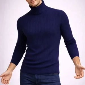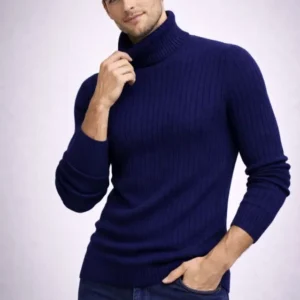 Erkek Balıkcı Yaka Bağazlı Triko Kazak Pamuklu Kalın Fitilli Dokuma, Regular Fit Uzun Kollu Kışlık Model – İndigo