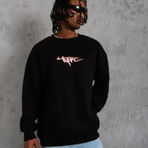 Bisiklet Yaka Baskılı SweatShirt – Siyah