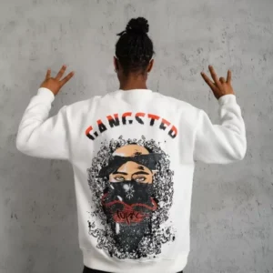 Erkek 3 İplik Gangster Baskılı Sweatshirt – Beyaz