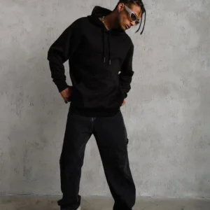 3 İplik Kapşonlu Sweatshirt Hoodie – Siyah