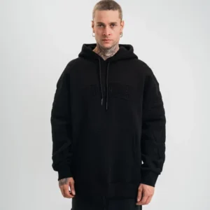 Double Oversize Kapşonlu Nakışlı SweatShirt – Siyah