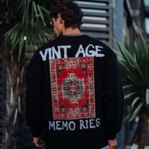 Oversize Bisiklet Yaka Üç İplik Baskılı SweatShirt – Siyah