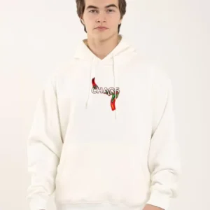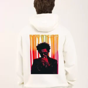 Unisex Baskılı Oversize Üç İplik Kapüşonlu Sweatshirt – Beyaz