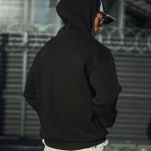 Üç İplik Kapüşonlu Ön Ve Arka Baskılı SweatShirt Hoodie – Siyah