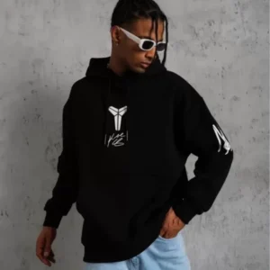 Unisex Kapüşonlu Üç İplik Oversize Baskılı Sweatshirt – Siyah