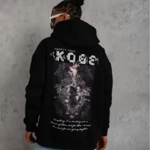 Unisex Sırt Baskılı Kapüşonlu Üç İplik Oversize Sweatshirt – Siyah
