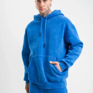 Unisex Double Oversize Kapşonlu Yıkamalı SweatShirt – Mavi