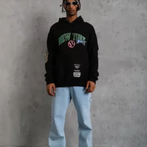 Erkek Baskılı Oversize Üç İplik Kapüşonlu Sweatshirt – Siyah